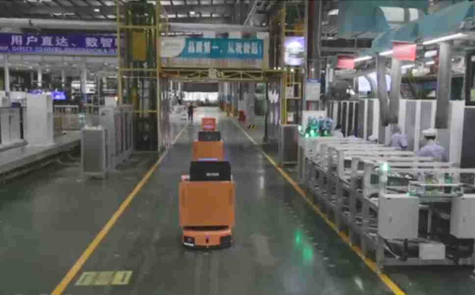 为车载冰箱物流配送打造的智能解决方案,,,,包含产中物流通过潜伏举升AMR搬运至线边,,,产后成品物流智能仓储,,流程包含产中物流智能齐套入库,,,线边安灯叫料AMR智能配送至线边,,,成品入库、、出库,,,通过无人堆高车机器人,,,,智能仓储管理替代人工作业管理,,,实现更高存储、、更高效率、、更具柔性化的解决方案。。